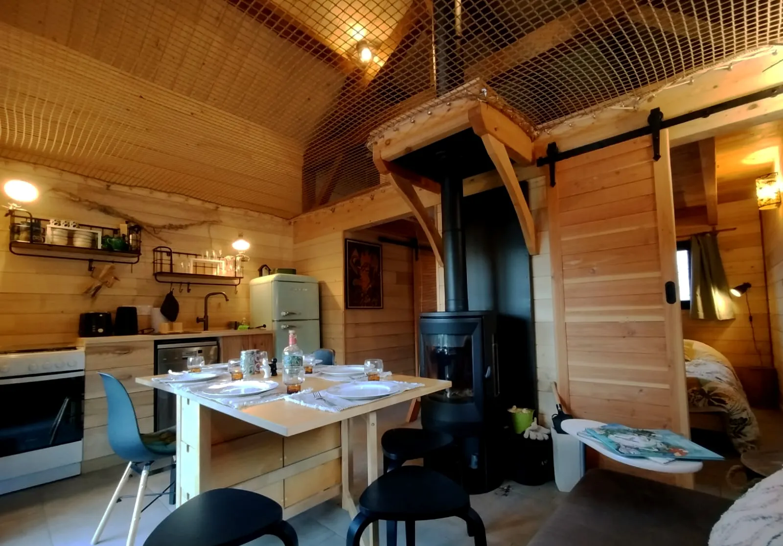 Laissez-vous surprendre par son filet suspendu au cœur du gîte, un espace ludique et convivial pour petits et grands, idéal pour se détendre, lire, ou simplement rêver en toute légèreté.Vacances écoresponsables et détente garantie